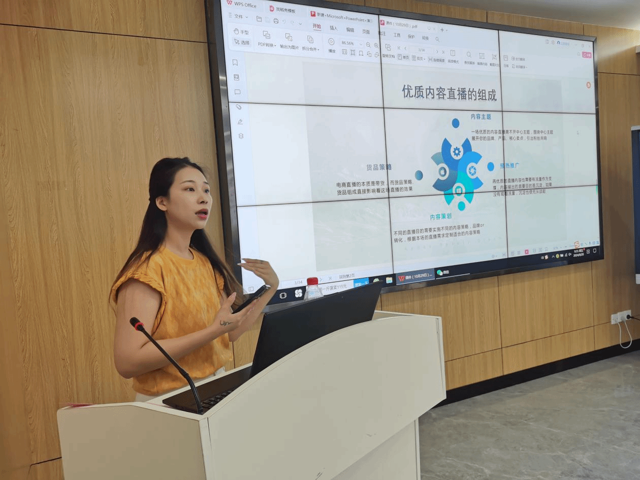 活动中,陈麒伊老师就选手如何开展直播并提高流量等备赛内容做了详细的讲解,深入浅出的向大家清楚讲解了平台的引流政策以及引流类型,注意事项等细则和实际操作流程,为选手们备赛提供了丰富的信息资源和实用的直播技巧。陈老师还展示了她在实操中的经验和典型案例,为同学们提供了实际的借鉴和指导,同时现场提供了后续咨询平台和资源对接渠道以帮助选手巩固学习成果。讲座中,参赛选手与陈老师积极互动交流,气氛热烈活跃,增强了实操信心和动力,并表示将把学到的知识和技能应用到后续的备赛和实战中,努力提升自己的直播能力,为乡村振兴贡献自己的力量。