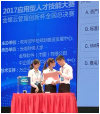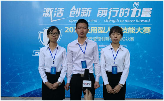 该项赛事自今年6月份启动以来,全国300所高校1210支队伍参赛,分为12个省区赛,其中88支队伍晋级全国总决赛,最后分为本科组和高职组各争夺1个一等奖。总决赛由中央电视台全程跟踪报道。m88在线网站入口信息科学与技术学院许佳琳、何燕芳、崔健武三位同学在指导老师黄灏然副教授的指导下,过关斩将,以赛区总分第一晋级全国总决赛。在全国总决赛中,学校代表队通过团队协作以及扎实的理论基础和过硬的实操技能,以决赛总分第一斩获大赛本科组一等奖。金蝶软件公司在颁奖现场直接向三位获奖同学伸出橄榄枝,毕业后可直接获得金蝶软件公司工作机会。