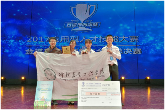 11月12日,在刚刚落幕的“2017应用型人才技能大赛——金蝶云管理创新杯全国总决赛”中,由信息科学与技术学院组成的仲恺农业工程学院“TheOne队”喜获本科组第一名,夺得本科组唯一一个一等奖。本次大赛由教育部学校规划建设发展中心主办,云南财经大学、金蝶软件(中国)有限公司承办。